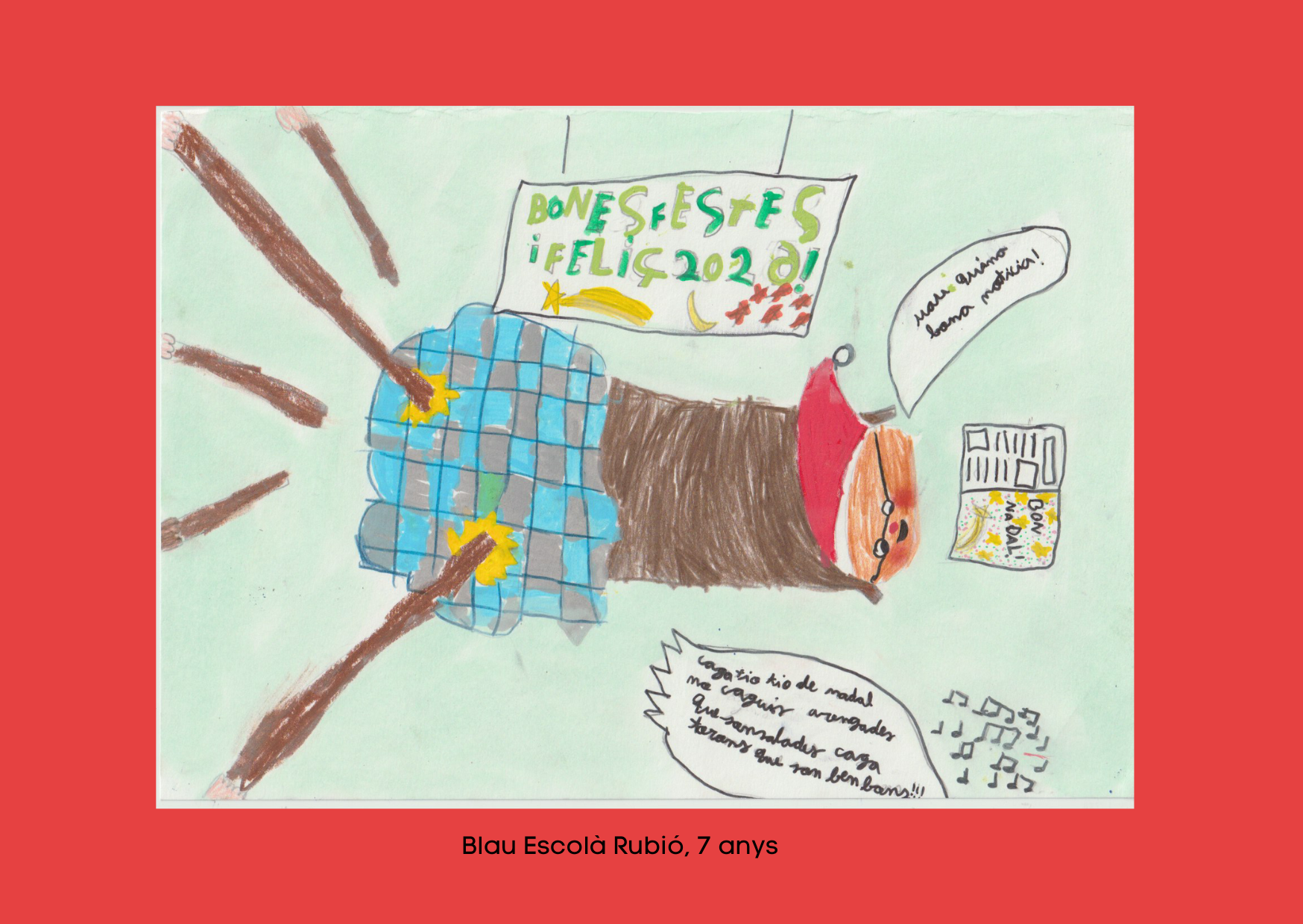 Enguany, la il·lustració de la postal de la Demarcació de Lleida, tindrà com a imatge central el dibuix de la Blau Escolà Rubió, de 7 anys. El colorit de la seva creació va agradar molt al jurat del iX Concurs de Dibuix-Il·lustració de Nadal de la demarcació de Lleida.