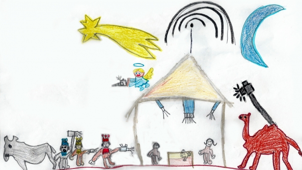 En Joel Isaac té set anys i ha fet un dibuix que combina perfectament els dos ingredients que demanàvem al concurs: temes nadalencs i temes periodístics, units en la representació d’un pessebre que s’ha convertit en el centre de l’atenció informativa. Els integrants del jurat han valorat la creativitat i els detalls del món de la comunicació que s’inclouen en la nadala: càmeres, focus i una antena que, des de dalt de l’establia, s’encarrega de retransmetre arreu què està passant. L’artista s’endú un lot de llibres valorat en 50 euros que podrà escollir ell mateix a la Llibreria 22 de Girona, que col·labora en aquesta activitat cedint part del premi.