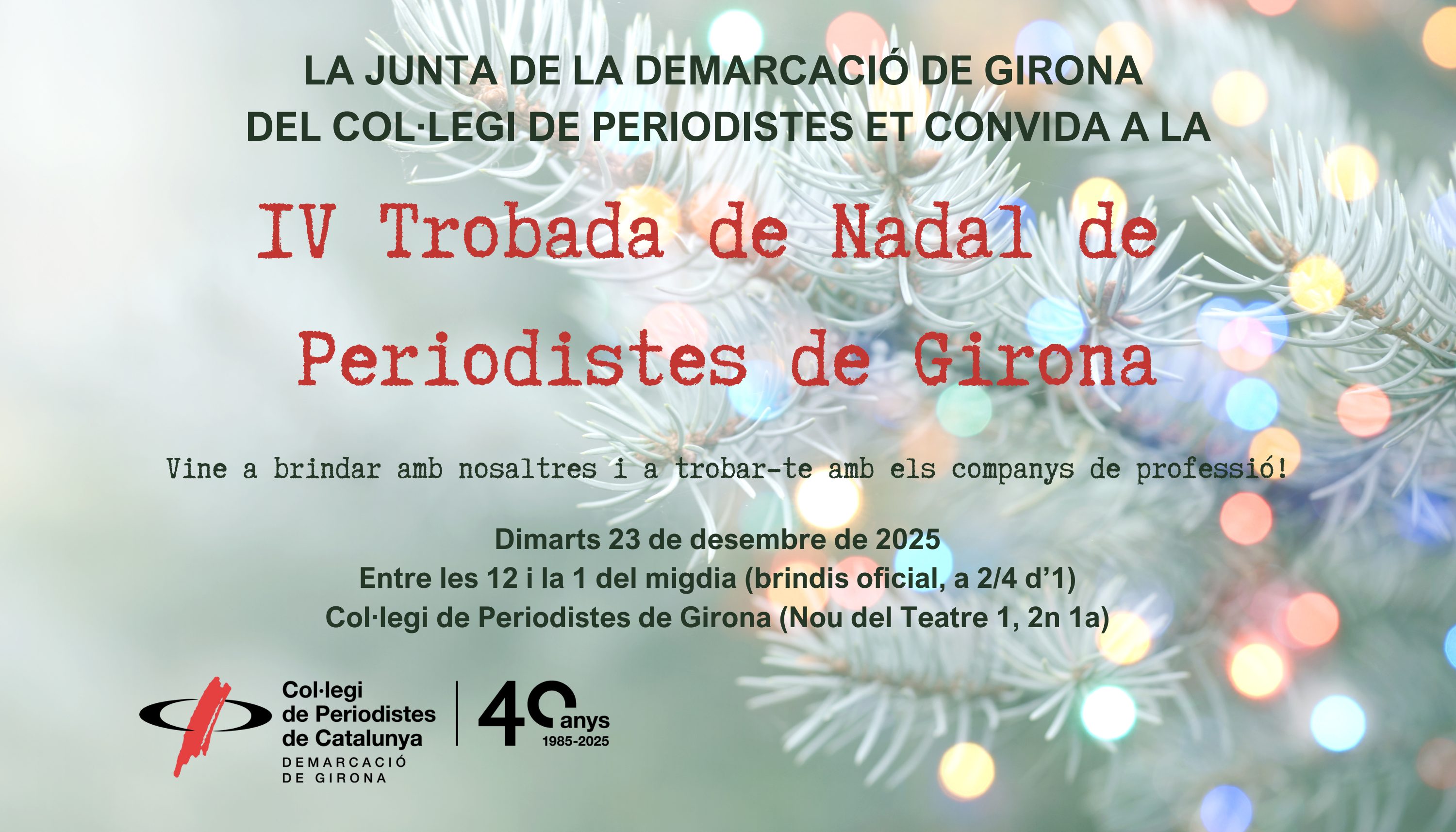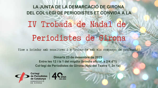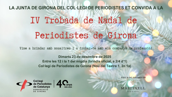 Ja tenim data per a la IV Trobada de Nadal de Periodistes de Girona: serà el dimarts 23 de desembre, a partir de les 12 del migdia. Així, tant si ens ha tocat la loteria com si no, segur que tindrem alguna cosa per celebrar!