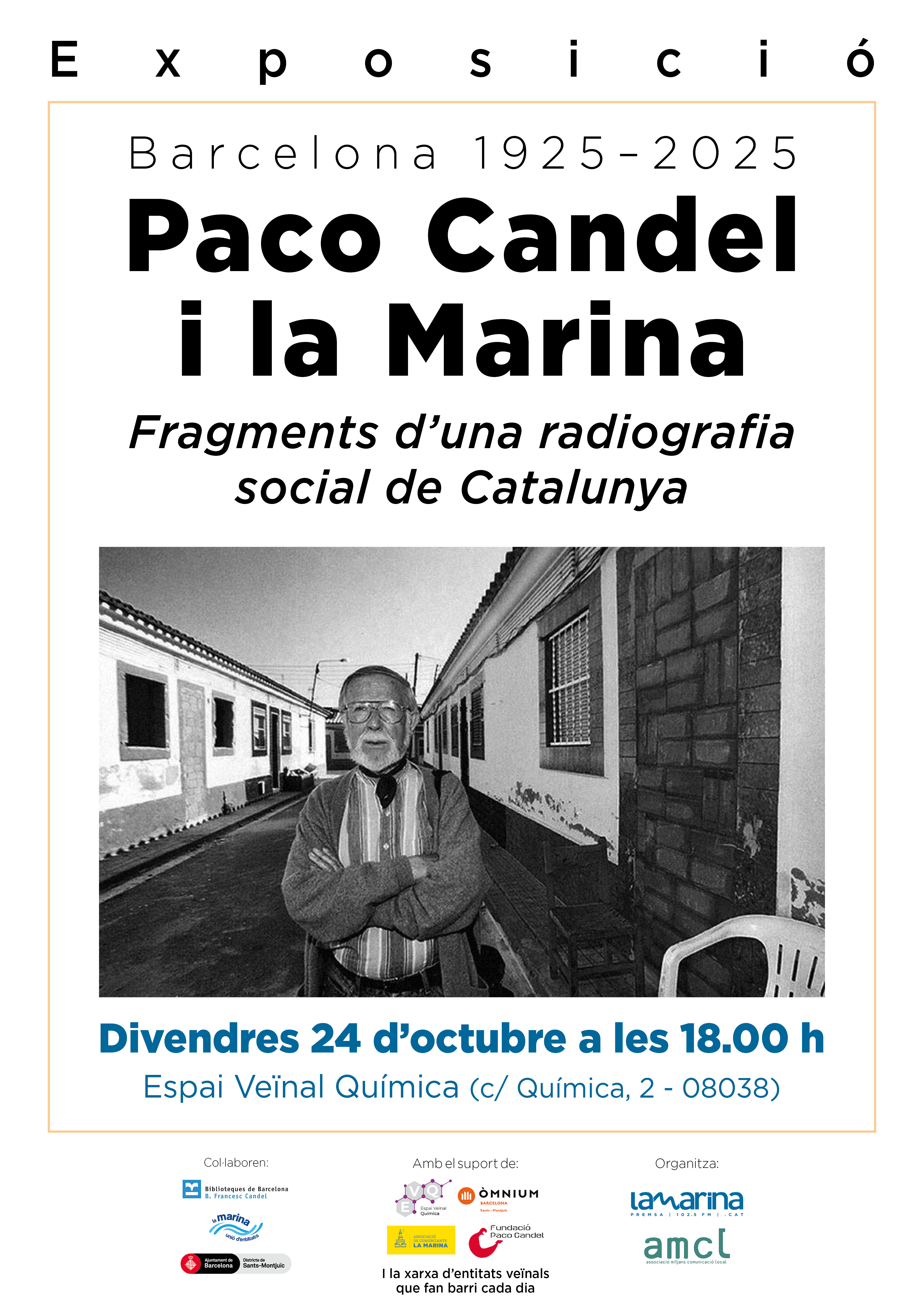 L’exposició “Paco Candel i La Marina. Fragments d’una radiografia social de Catalunya” es tracta d’una reflexió sobre els reptes que ens interpel·len avui: la realitat social, la immigració, la transformació dels paisatges urbans i culturals, i el paper dels barris en la construcció d’una ciutat més justa i plural.