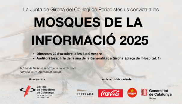 Ja tenim finalistes a rebre la Mosca Grossa i la Mosca Borda d'aquest 2025! El president de la Demarcació de Girona del Col·legi de Periodistes, en Jordi Grau, ha fet públics avui els noms dels finalistes a les dues categories.