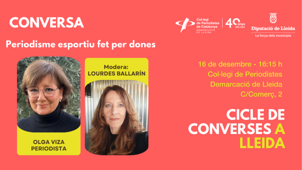 Per finalitzar el cicle de converses periodístiques del 2025 del Col·legi de Peridistes de la Demarcació de Lleida, comptarem amb la periodista Olga Viza, que a més estarà acompanyada de la periodista Lourdes Ballarín. Es durà a terme el pròxim 16 de desembre a les 16:15 h a la seu del col·legi de Periodistes de Lleida (Carrer Comerç núm. 2).