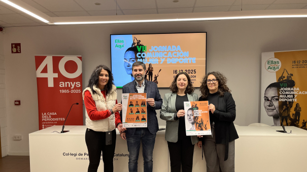 L’anàlisi de com està canviant l’esport d'alta competició serà un dels eixos de la setena edició de la Jornada "Comunicación, Mujer y Deporte", presentada aquest matí a la demarcació de Lleida del Col·legi de Periodistes de Catalunya, amb l’assistència d’Òscar Martínez, diputat d’Esports de la Diputació de Lleida; Mercè Gomà, responsable del projecte #EllasSonDeAquí de Grup Nufri; Carme Cabanillas, presidenta d’Esport Femení Lleida; i Laura Alcalde, presidenta del Col·legi de Periodistes a Lleida. La jornada se celebrarà el pròxim 16 de desembre (dimarts), de 9 h a 14 h, a la sala de Cambra de l'Auditori Enric Granados de Lleida i serà moderada per les periodistes Paloma del Río i Laia Bonals.