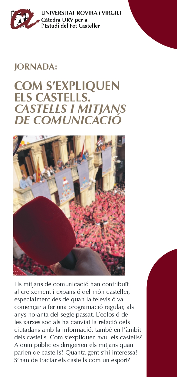 La Càtedra URV per a l’Estudi del Fet Casteller dedicarà la seva jornada anual, convocada per dissabte 15 de novembre al Museu Casteller, a analitzar com s’expliquen els Castells a través dels Mitjans de comunicació.