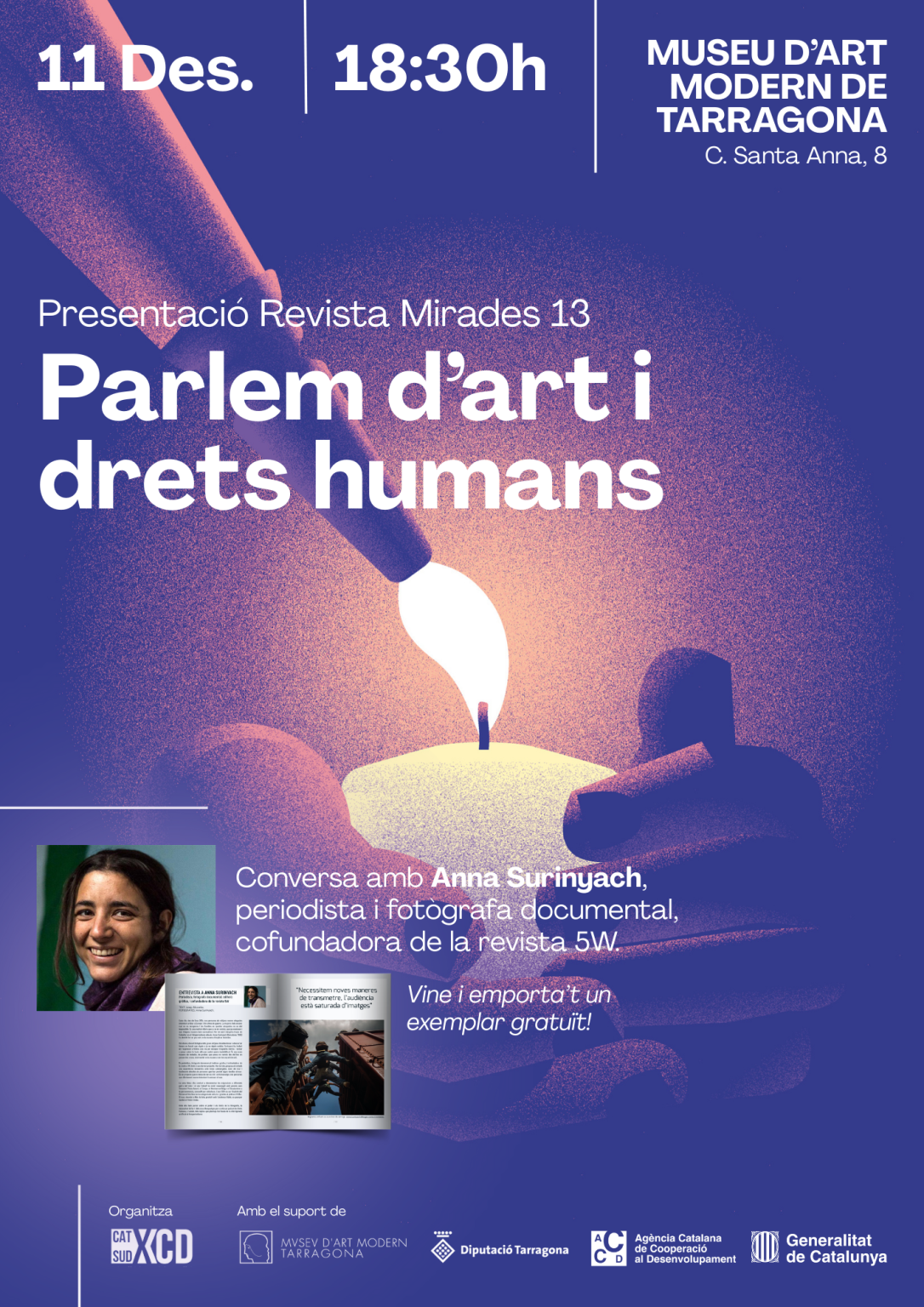 El Museu d'Art Modern de Tarragona (C. Santa Anna, 8) acull l'11 de desembre (18.30h) la presentació del número 13 de la Revista Mirades, que inclourà una conversa amb la periodista i fotògrafa documental Anna Surinyach, cofundadora de la revista 5W.