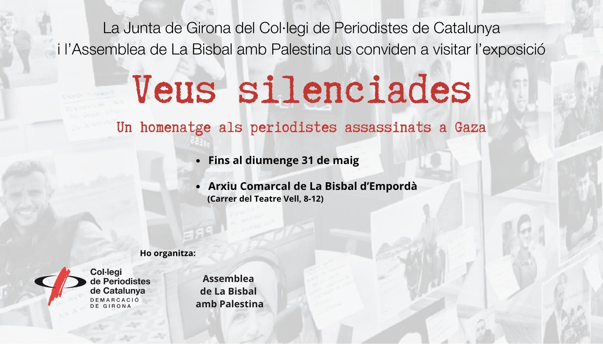 L’exposició «Veus silenciades. Un homenatge als periodistes assassinats a Gaza» s’ha instal·lat a l’Arxiu Comarcal de la Bisbal d’Empordà, on es podrà veure al llarg de tot el mes de maig. Organitzada pel Grup de Periodisme per la Pau del Col·legi de Periodistes de Catalunya, conjuntament amb l’Assemblea de La Bisbal amb Palestina, vol homenatjar els centenars de periodistes i professionals de la comunicació que han perdut la vida en l’exercici de la seva professió i sensibilitzar sobre la fragilitat de la llibertat de premsa a Gaza.