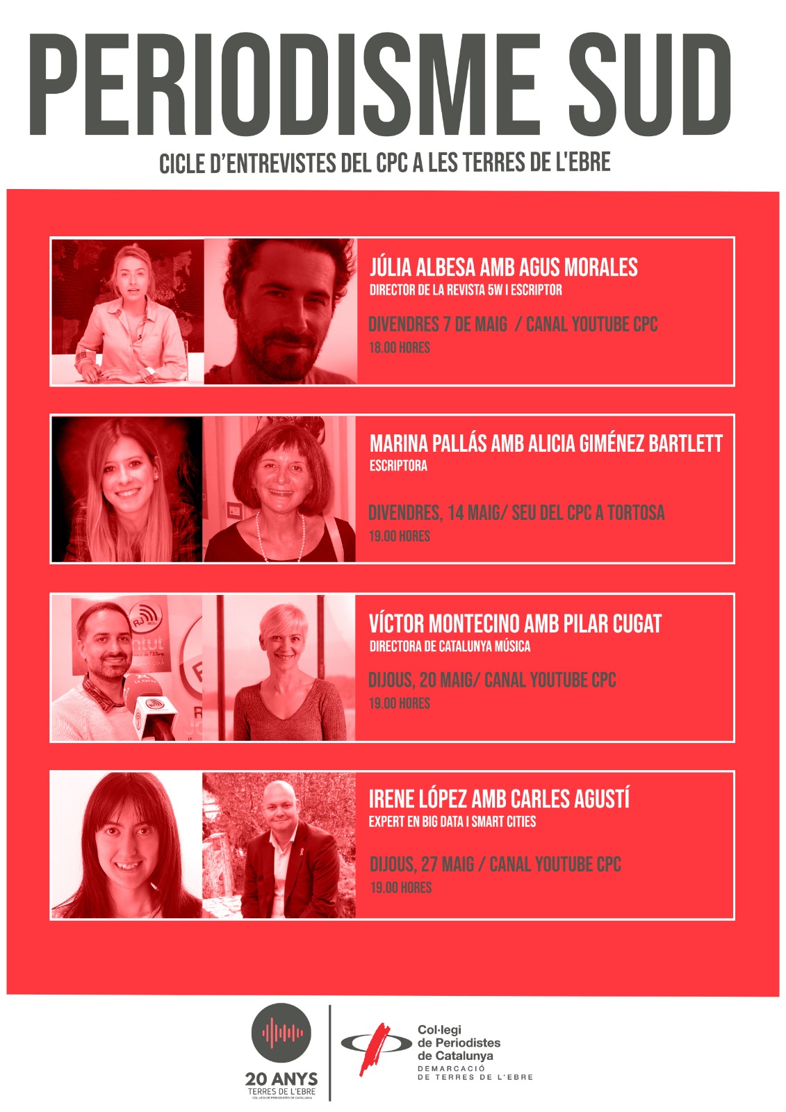 Periodisme Sud s’emmarca dins dels actes de celebració dels vint anys de la Demarcació de les Terres de l’Ebre del CPC i s’ha concebut com un espai on els periodistes del territori puguen entrevistar a persones referents en l’àmbit dels mitjans de comunicació i de la cultura. Són persones escollides pels mateixos col·legiats i col·legiades, d’acord amb les seues preferències, però que es posen al servei de tots, de manera que les entrevistes es podran enregistrar i reproduir total o parcialment als mitjans de comunicació en qualsevol format.